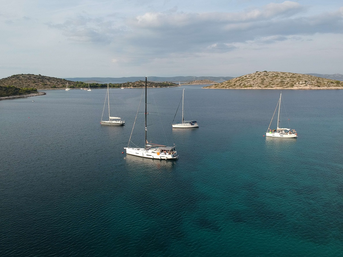 Day 2: 45 NM - Dugi Otok and Telašćica bay. One of the largest bays of the Adriatic Sea, it is 10 km long. Remains from the Paleolithic era were found on the island, which only proves that it has been inhabited for a long time. Divided as if into two worlds, the north-eastern part has no vegetation, while the south-western part has a dense forest. A 10-minute walk from the bay there is a salt lake that changes water levels depending on sea level. The main attraction of the island, which is located on the sea side, are 166-meter high cliffs. It is worth seeing them from above and from the sea.